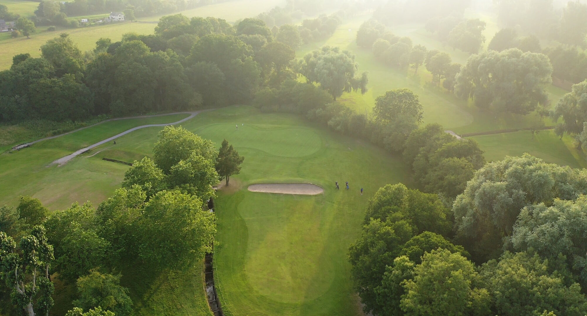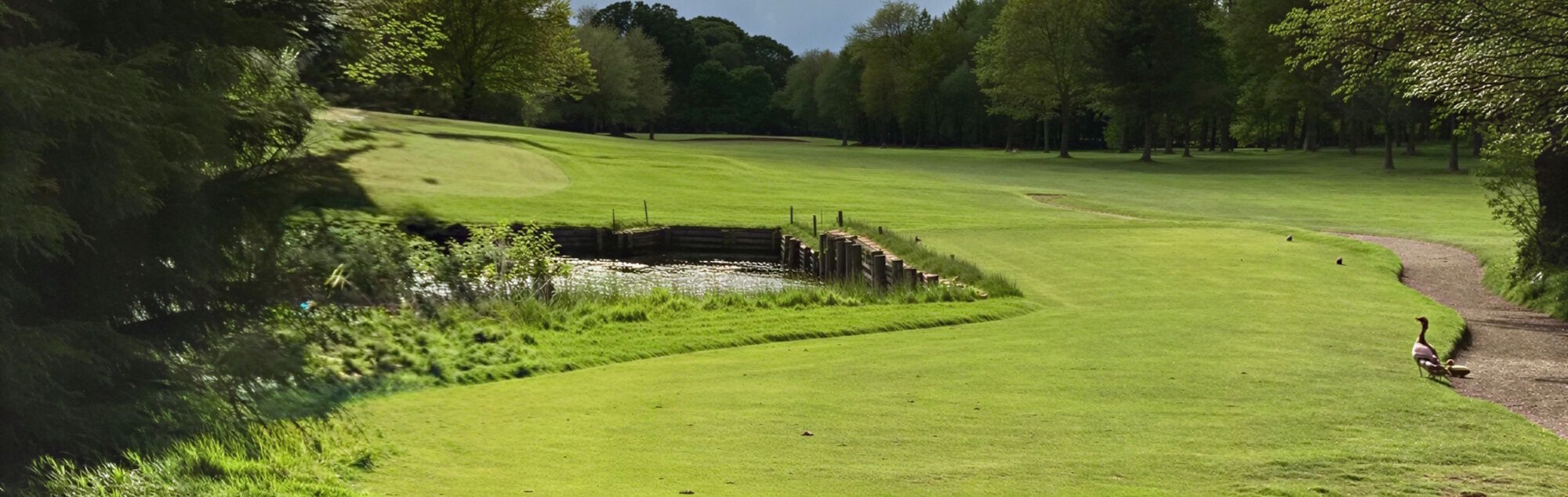 The tee shot must be accurate and avoid the clump of trees on the right and the water hazard about 230 yards off the tee. The approach shot is over the hazard and a large bunker to the two-tier green shared with the 7th. The up and down from behind the green is demanding. Play safe.